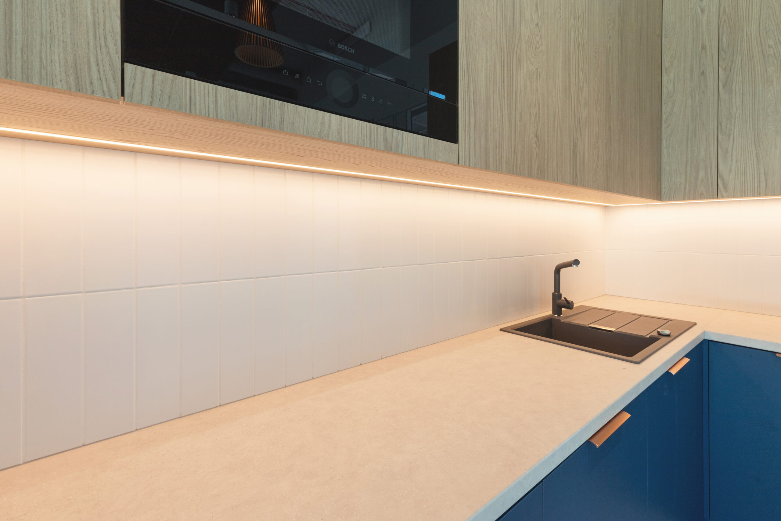 Inspiracje bałtyckim charakterem oraz tradycją marki STENA przełożyły się na harmonijne zestawienie bieli, granatu, drewna i metalicznych wykończeń. Efekt? Przestrzeń spokojna, ale z energią.